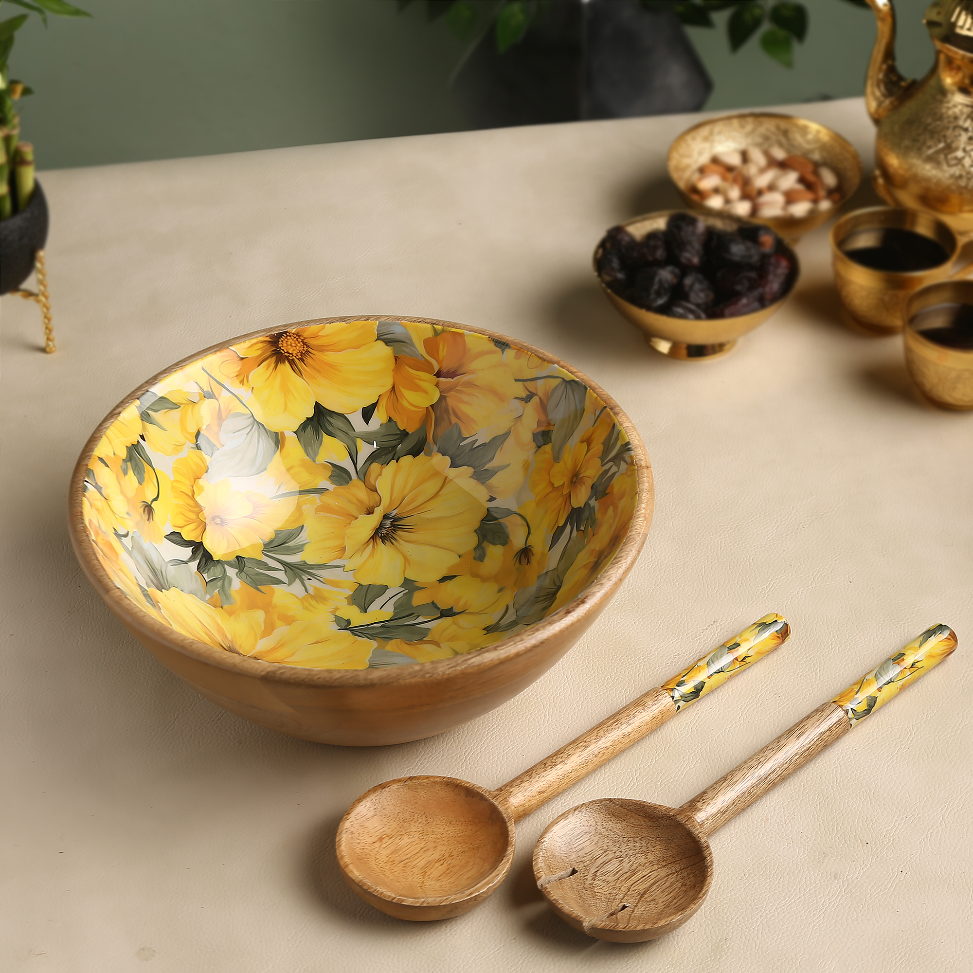 Refresh your kitchen and dining space with our Artisanal Botanical Wooden Bowl. Featuring a stunning hand-applied enamel interior with intricate botanical leaf patterns, this bowl perfectly balances nature-inspired art with rustic wood textures. Its smooth, high-gloss finish makes it a standout piece, whether you’re serving your favorite snacks or using it as a chic organizer for your home.