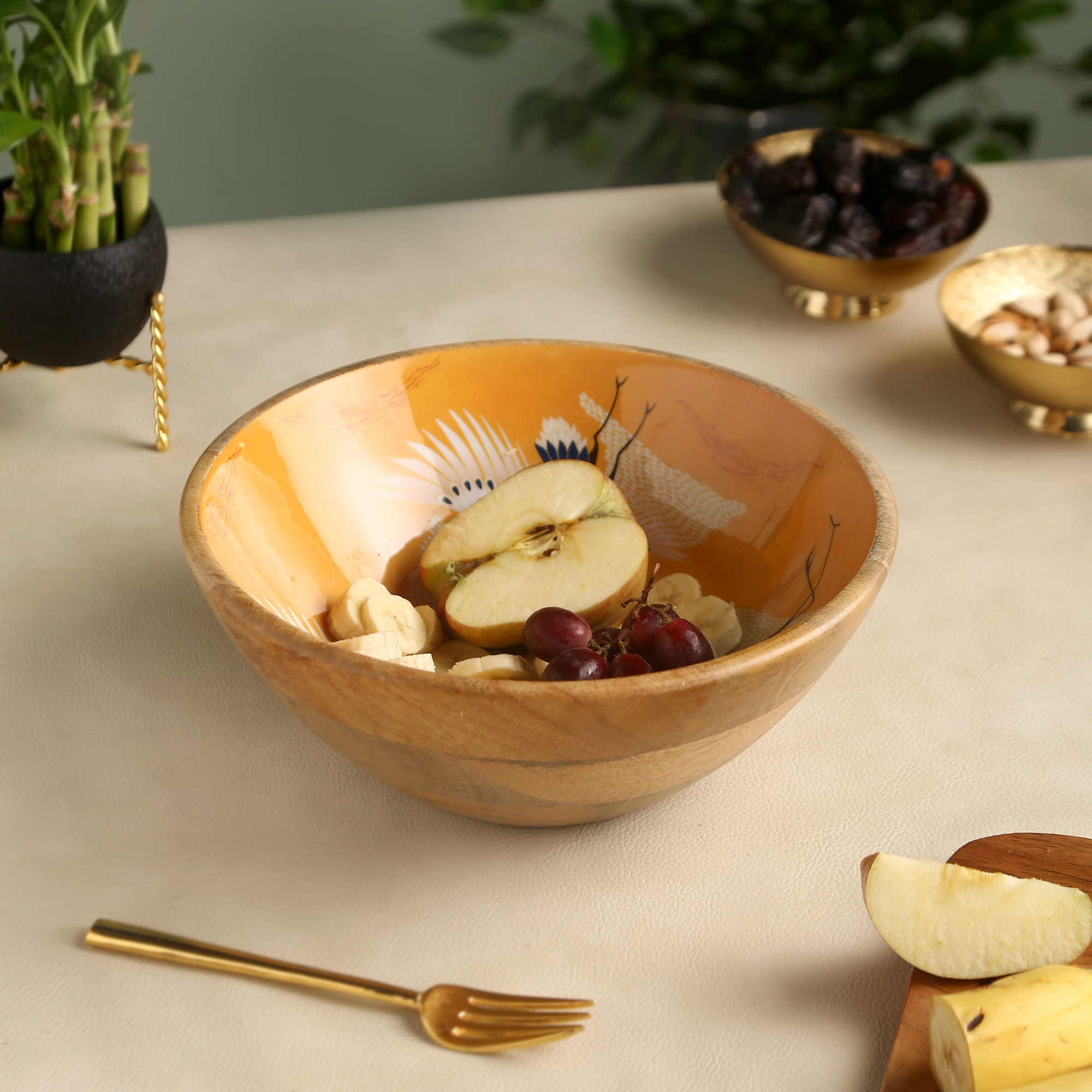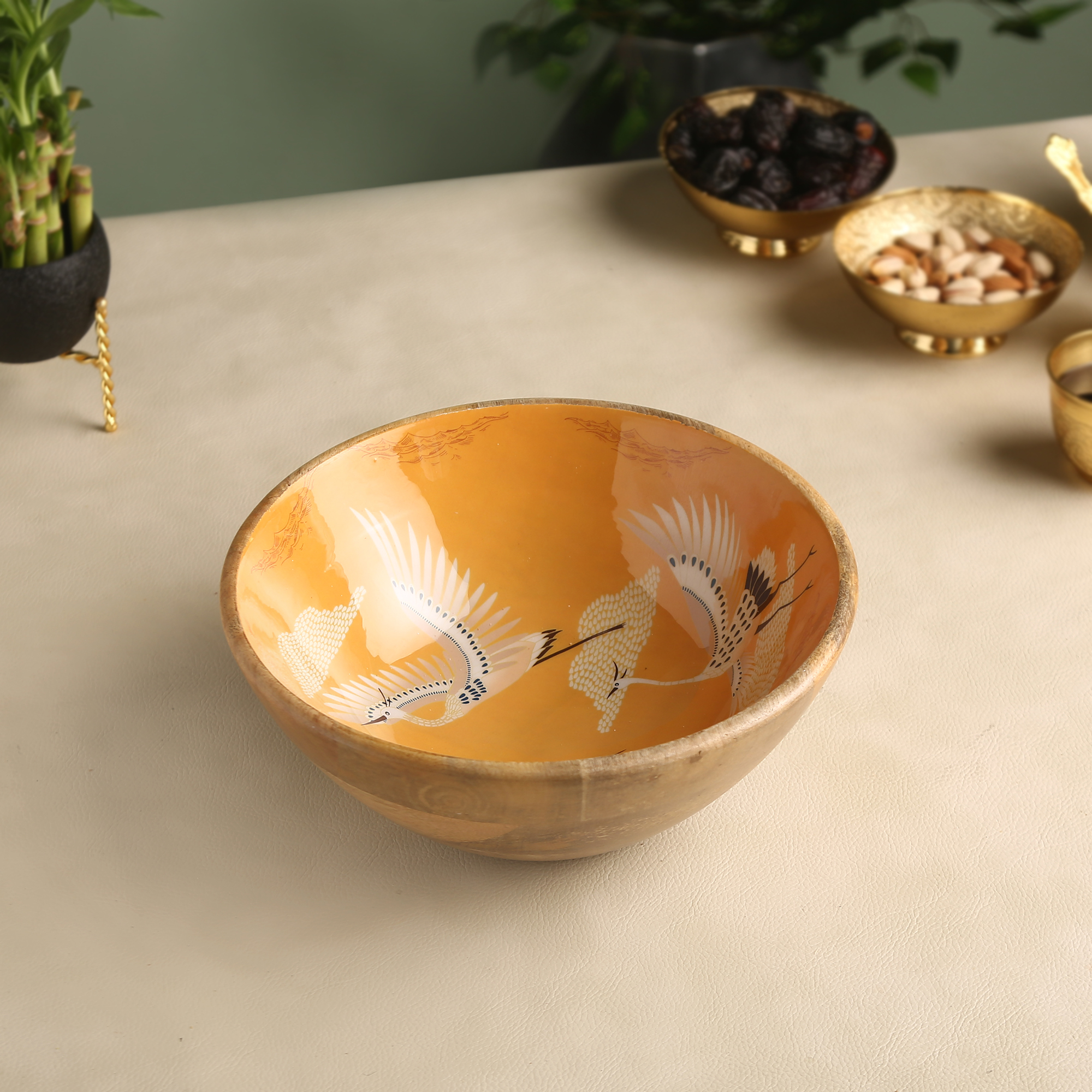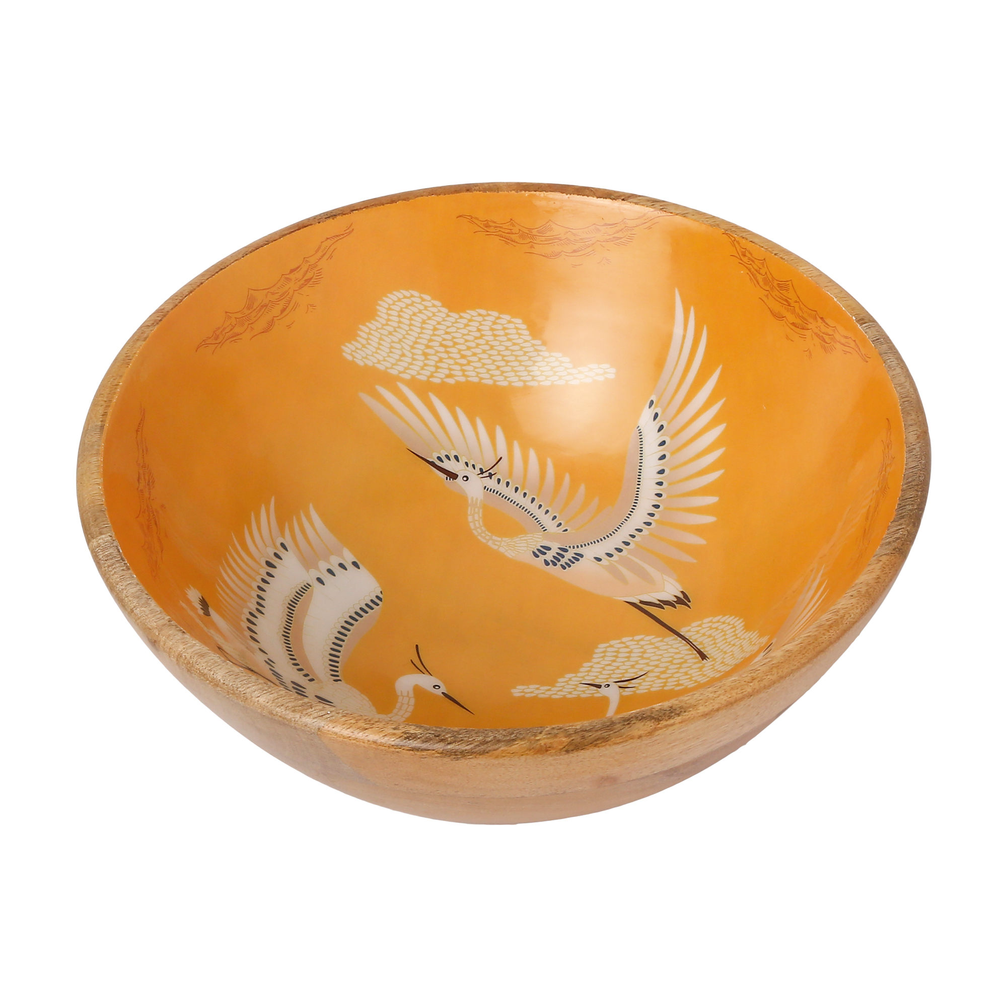 Add a touch of grace and timeless beauty to your home with our Crane Bird Wooden Enamel Bowl. Featuring a stunning illustration of elegant cranes amidst nature, this bowl is a true piece of artisanal decor. The sophisticated enamel interior, combined with the organic warmth of the natural wood exterior, makes it a luxurious choice for those who appreciate fine craftsmanship and bird-inspired art.